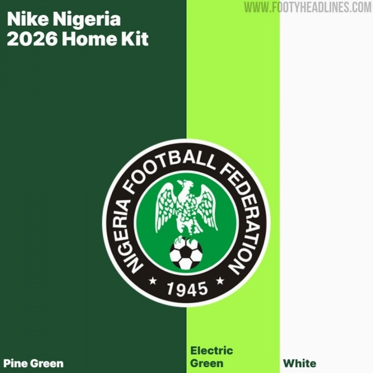 9月20日讯 著名足球装备网站FootyHeadlines发布了尼日利亚2026年国家队主场球衣的配色方案。