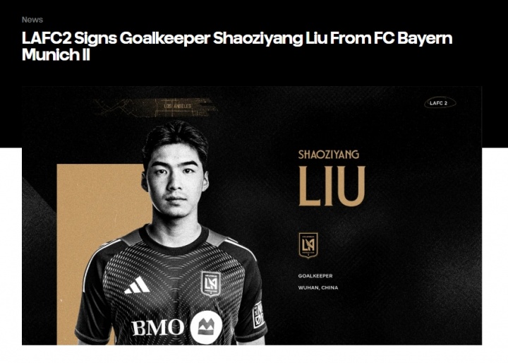据美职联球队洛杉矶FC官方消息,俱乐部二队签下拜仁慕尼黑二队门将刘邵子洋。